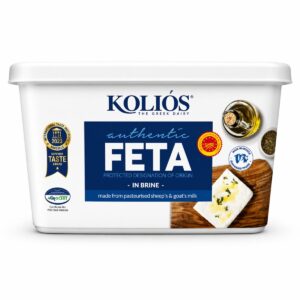 Kolios Feta in Brine – 2KG is an authentic Greek PDO (Protected Designation of Origin) cheese made from high-quality pasteurised sheep’s milk blended with goat’s milk. Matured in brine, this traditional feta develops its signature tangy flavour, creamy texture and rich aroma typical of Mediterranean cheeses.