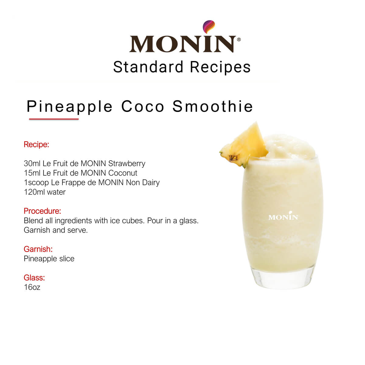 Juicy, bright and just the right amount of sweetness; it’s no wonder fresh strawberries are a summer time favorite. Enjoy the sensation of summer all year long when you use Monin Strawberry Fruit Purée to make beverages that includes lemonades, iced teas and smoothies.
