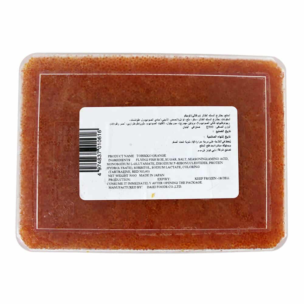 Flying Fish Roe, Sugar, Salt, Seasoning (Amino Acid, Monosodium L-Glutamate, Disodium 5-Ribonucleotides, Protein Hydrolysate, Red No, 40).