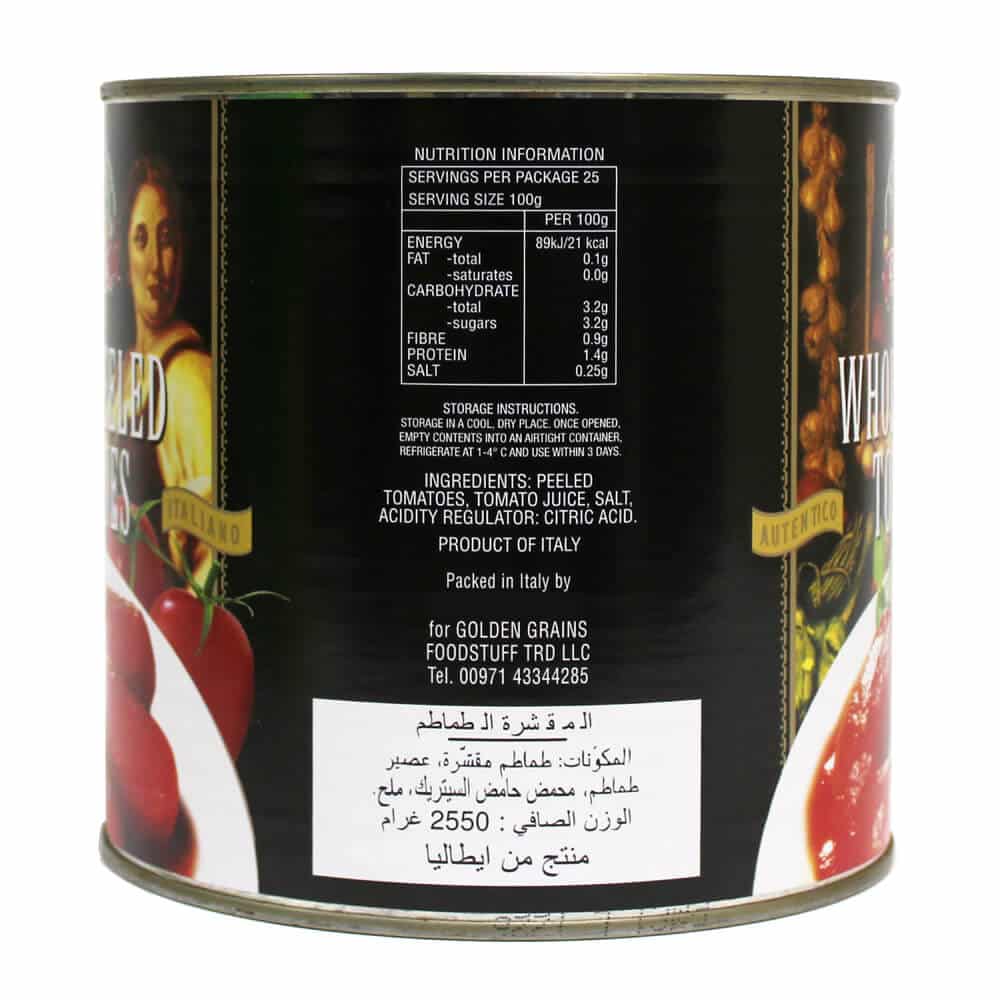 Peeled Tomatoes, Tomato Juice, Salt, Acidity Regulator: Citric Acid.